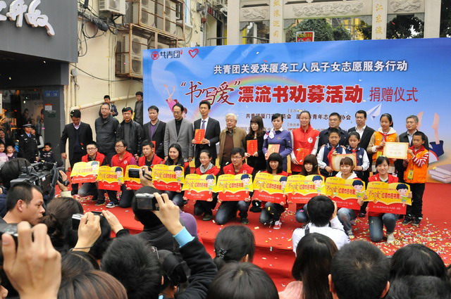3月4日下午,在中山路步行街的活動(dòng)現(xiàn)場,集團(tuán)的志愿者們將整理好的六大箱愛心圖書贈(zèng)送給了來廈務(wù)工人員子弟學(xué)校,并參加了現(xiàn)場的“書寫愛”漂流書勸募活動(dòng),向社會(huì)傳遞我們象嶼人的公益和愛心。