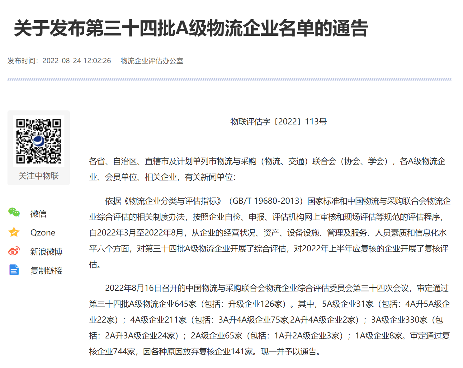 今天,中國物流與采購聯(lián)合會發(fā)布“全國第三十四批A級物流企業(yè)名單”,象嶼股份旗下企業(yè)象道物流集團有限公司(以下簡稱:象道物流)以大宗商品物流可持續(xù)發(fā)展創(chuàng)新模式與實踐成果,榮膺最高評級國家5A級綜合服務型物流企業(yè),成為象嶼股份體系第三家獲此殊榮的企業(yè)。